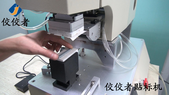 3)然后踩腳踏,此時(shí)貼標(biāo)過程已經(jīng)完成.看似只有一秒鐘的時(shí)間,在這個(gè)時(shí)間中,機(jī)器進(jìn)行了一系列的工作.