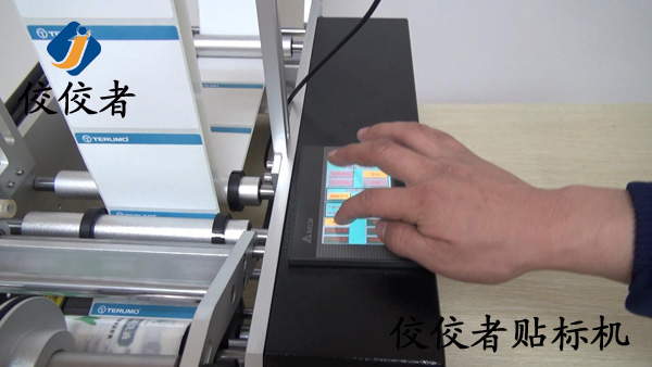 上圖展示的是工作人員將需要貼標的PE管放在方便拿取的位置以增加貼標的效率,此時有一個步驟在圖片中沒有展示出來,那就是接通電源之后需要做的就是將PE管放在包膠軸與覆標海綿軸待貼位置,可根據產品直徑的大小進行調整,然后踩腳踏,此時貼標過程已經完成.看似只有一秒鐘的時間,在這個時間中,機器進行了一系列的工作。當腳踩發出信號,電機轉動帶動PE管轉動,并送出標簽到PE管上,一邊出標一邊覆標.至此,貼標過程就已經完成了。(操作過程:放產品—>貼標并覆標(設備自動實現)—>取出已貼標產品。)如下圖: