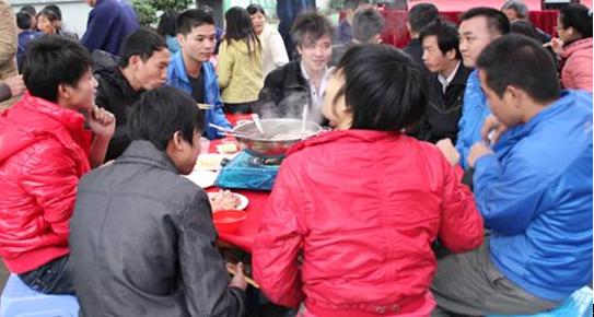 伴隨著一片片掌聲的揚起,我們的后勤部隊把所有吃的東西都搬了上來,晚宴也在進行中。灑桌上,熱湯的沸滾聲、同事們的嘻笑聲以及臺上正再進行的腦筋急轉(zhuǎn)彎的節(jié)目。表情如此多樣。