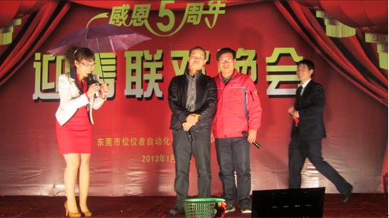 2013年1月26日,是東莞市高臻智能自動化設(shè)備有限公司全體員工年終聯(lián)歡的時刻。今天天氣溫和,不冷不熱。但恰恰卻在晚會將要開始前半個小時,天上下起了毛毛細雨,雨為聚財,這正是寓意著來年我們高臻智能的業(yè)績將要更上一層樓!
