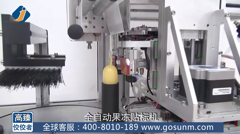 我想很多人小時候甚至現(xiàn)在都很喜歡吃果凍吧,那種又甜又滑的感覺讓人愛不釋手,果凍的包裝更是各式各樣,隨著市場需求的迅速擴大,果凍行業(yè)逐步形成產(chǎn)業(yè),不少生產(chǎn)廠家都在尋找果凍貼標(biāo)機,那么,接下來讓我在這里為大家介紹我們高臻機械公司一款果凍貼標(biāo)機,也叫全自動果凍貼標(biāo)機,先來看看他的整體大圖: