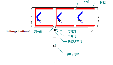工作原理說明:根據厚度的不同來識別標簽之間的縫隙。(通過光線穿透沒有標簽的地方與不穿透有標簽的地方來識別)適用于紙質的標簽或者其他有一定厚度的標簽。