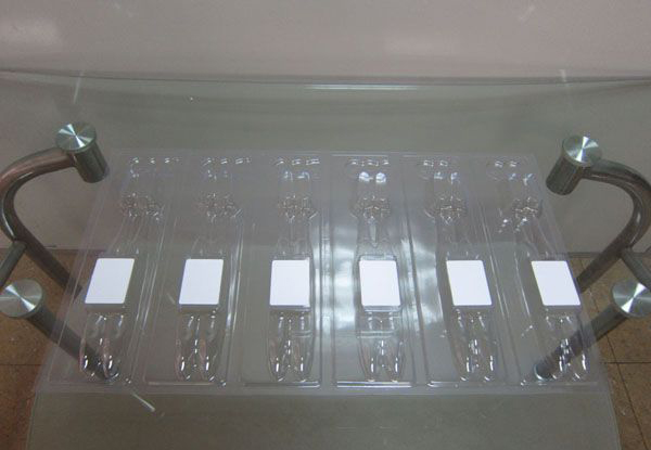 下圖是我公司牙膏包裝盒平面貼標機對牙膏包裝盒進行貼標的樣品圖片。