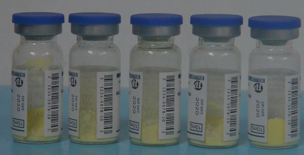 醫(yī)藥用品貼標(biāo)樣品圖片.上圖中的兩上樣品圖片都是貼一張不干膠標(biāo)簽,貼2/3周.這個(gè)可以用全自動(dòng)臥式圓瓶貼標(biāo)機(jī).也可以用全自動(dòng)定位立式圓瓶貼標(biāo)機(jī)。